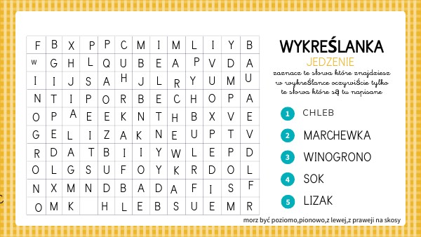 zaznacz te słowa które znajdziesz w wykreślance oczywiście tylko te słowa które są tu napisane