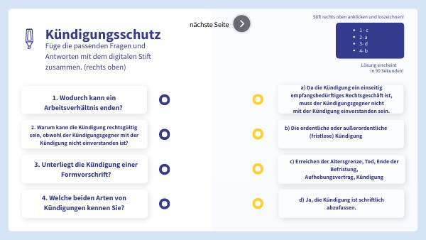 Füge die passenden Fragen und Antworten mit dem digitalen Stift zusammen. (rechts oben)