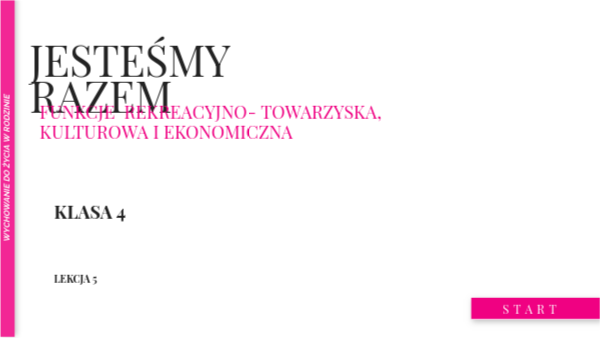 W rodzinie uczymy się wartościowego spędzania wolnego czasu i efektywnego odpoczynku. Poznajemy zarówno aktywne ( związane z ruchem), jak i bierne (intelektualne ) formy relaksu.