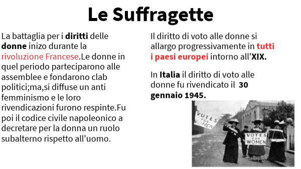 Il diritto di voto alle donne si allargo progressivamente in tutti i paesi europei intorno all'XIX.