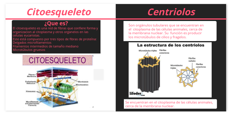 Son orgánulos tubulares que se encuentran en el citoplasma de las células animales, cerca de la membrana nuclear. Su función es producir los microtúbulos de cilios y fragelos.