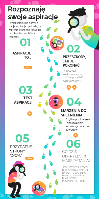 Dzisiaj spróbujcie określić swoje aspiracje i potrzeby w zakresie własnego rozwoju i możliwych sposobów ich realizacji.