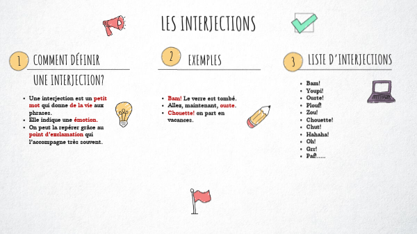 - Une interjection est un petit mot qui donne de la vie aux phrases.