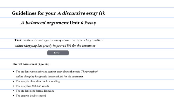Guidelines for your A discursive essay (1): A balanced argument Unit 6 Essay