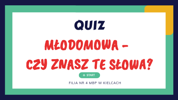 Rozwiąż quiz. Jeżeli wybierzesz błędną odpowiedź - trudno. Nie zrażaj się, zaznacz prawidłową i spróbuj rozwiązać kolejne zadanie. Ciekawe, czy jesteś Mistrzem Młodomowy? Sprawdź. Możesz wrócić na START naciskając znaczek umieszczony w lewym górnym rogu każdej planszy z zadaniem. POWODZENIA!