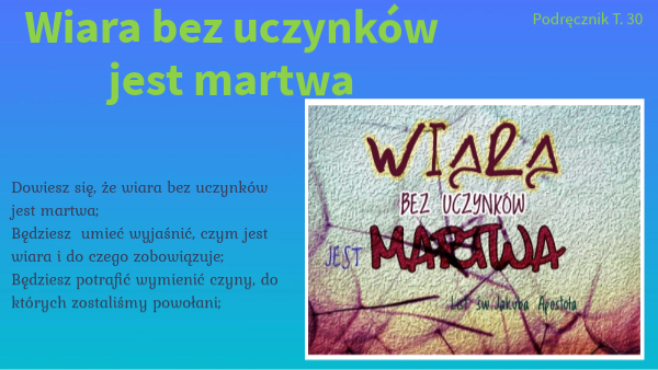 Wiara bez uczynków martwa jest kl.7 T.30