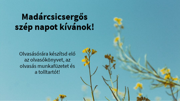 Olvasásórára készítsd elő az olvasókönyvet, az olvasás munkafüzetet és a tolltartót!