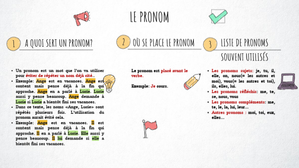 - Un pronom est un mot que l’on va utiliser pour éviter de répéter un nom déjà cité..