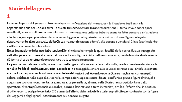 Su uno sfondo naturale spoglio e poco caratterizzato, simboleggiante l'alba del mondo sta semidistesa la figura giovane e atletica di Adamo, che da un pendio erboso, quasi sul ciglio di un abisso, fa per sollevarsi da terra, tendendo un braccio verso l'Eterno, che si avvicina in volo entro un nimbo angelico. Dio, con la veste purpurea, è circondato, secondo la tradizione iconografica, da un gruppo d'angeli, ma al posto degli stereotipati serafini e cherubini (sebbene vengano rappresentati in modo diverso dalla Bibbia, infatti i Serafini hanno 6 ali e invece i Cherubini hanno sembianze animalesche), Michelangelo rappresentò delle figure reali, impegnate in uno sforzo come per sollevare il nimbo e composte in varie attitudini e atteggiamenti, con un trattamento differenziato in termini di illuminazione e nitidezza che amplifica, per contrasto, quelle in primo piano. Straordinaria è l'invenzione degli indici alzati delle braccia protese, un attimo prima di entrare in contatto, come efficacissima metafora della scintilla vitale che passa dal Creatore alla creatura forgiata, di straordinaria bellezza che riflette la perfezione e la potenza divina, ridestandola. Tale gesto fu forse ispirato dalla fiorentina Annunciazione di Cestello di Sandro Botticelli. Il momento così immortalato acquistava un valore eterno e universale, sospeso in un trepidante avvicinamento che non avviene, ma è già perfettamente intellegibile. Alcuni pensano che il contatto che non avviene tra le due dita sia voluto, per sottolineare l'irraggiungibilità della perfezione divina da parte dell'uomo. Dettaglio Adamo, dal corpo definito con notevole perizia anatomica, poggia il braccio sul ginocchio piegato, in un perfetto effetto di risveglio: solleva lentamente il corpo e alza il dito ancora incerto verso quello assolutamente fermo di Dio. La figura del primo uomo presenta morbidi trapassi chiaroscurali, che però, tramite il ricorso a tonalità brillanti, rendono un forte risalto scultoreo. Il suo volto, di profilo e leggermente ruotato all'indietro, è quello di un adolescente, senza un'espressione definita, che si contrappone all'intenso ritratto di Dio Padre, maturo e carico d'energia, con la capigliatura grigia e una lunga barba con baffi fluttuante nell'aria. L'occhio di Adamo non è dipinto, ma è ricavato direttamente "rialzando" l'intonaco ancora fresco, così da creare un gioco di ombre.[2] Per l'Adamo, Michelangelo si ispirò, come fece per la Creazione di Eva, alla formella scolpita da Jacopo della Quercia per la Porta Magna della Basilica di San Petronio a Bologna. La posa di Adamo venne studiata in un foglio a carboncino nero e sanguigna, oggi al British Museum di Londra. Sotto la gamba di Adamo sporge la mano di uno degli Ignudi, i giovani che siedono agli angoli dei pannelli narrativi. Dettaglio Il gruppo divino è inserito in un grande manto rossastro, gonfio di vento, che abbraccia l'Eterno e gli angeli con una curva dinamica, che per alcuni studiosi ricorda la forma di un cervello umano, che sottolineerebbe il concetto di "idea" divina, per altri una conchiglia. Un gruppo di ricercatori italiani, in un lavoro recentemente pubblicato sulla rivista Mayo Clinic Proceedings, ha accostato la sagoma del "mantello" raffigurato nell'affresco con una sezione anatomica di utero post-partum, ottenendo una suggestiva sovrapposizione. La corrispondenza dei dettagli anatomici, sorprendente per l'esattezza, non può essere ritenuta casuale, ma si spiegherebbe solo in virtù della profonda conoscenza anatomica che Michelangelo aveva acquisito attraverso una consolidata esperienza di dissezioni su cadavere praticate durante il periodo trascorso presso la Basilica di Santo Spirito a Firenze.[3]. Già Adrian Stokes nel 1955 aveva parlato di "uterine mantle"[4] e il Professor Andrea Tranquilli aveva intuito che il mantello fosse la rappresentazione di un organo cavo di colore rosso deputato alla "creazione"[5]. Secondo altre interpretazioni l'immagine che comprende il gruppo di Angeli con Dio al centro sarebbe una sezione anatomica dell'emisfero destro del cervello umano [6], [7], tale raffigurazione anatomica potrebbe avere un significato riconducibile alle concezioni neoplatoniche concernenti l'unità dell'uomo con Dio [8], [9].