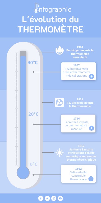 Le thermomètre est un instrument de mesure de la température. Depuis son invention, il a beaucoup évolué. Ne manquez pas cette infographie avec les dates les plus importantes.