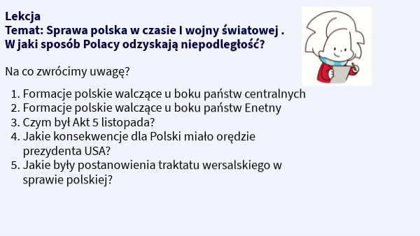 Lekcja Temat: Sprawa polska w czasie I wojny światowej . W jaki sposób Polacy odzyskają niepodległość?