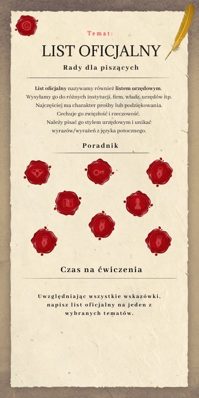 Uwzględniając wszystkie wskazówki,napisz list oficjalny na jeden z wybranych tematów.