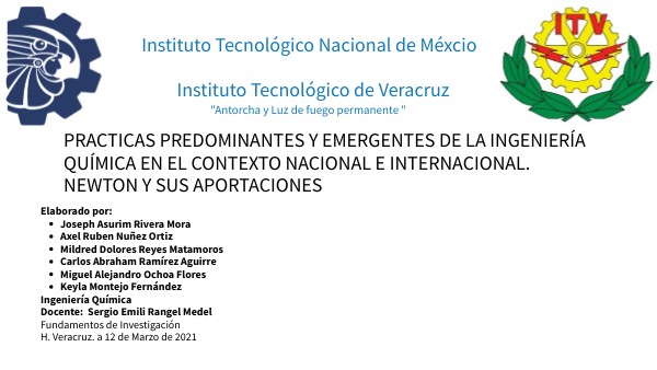 PRACTICAS PREDOMINANTES Y EMERGENTES DE LA INGENIERÍA QUÍMICA EN EL CONTEXTO NACIONAL E INTERNACIONAL.NEWTON Y SUS APORTACIONES