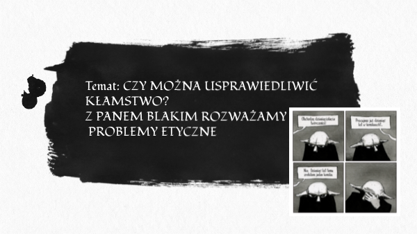 Temat: CZY MOŻNA USPRAWIEDLIWIĆ KŁAMSTWO? Z PANEM BLAKIM ROZWAŻAMY PROBLEMY ETYCZNE