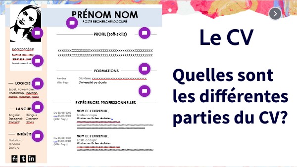 Cliquez sur les différentes parties du cv pour les découvrir.