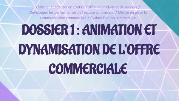 Dossier 1 : ANiMATION ET DYNAMISATION DE L’OFFRE COMMERCIALE