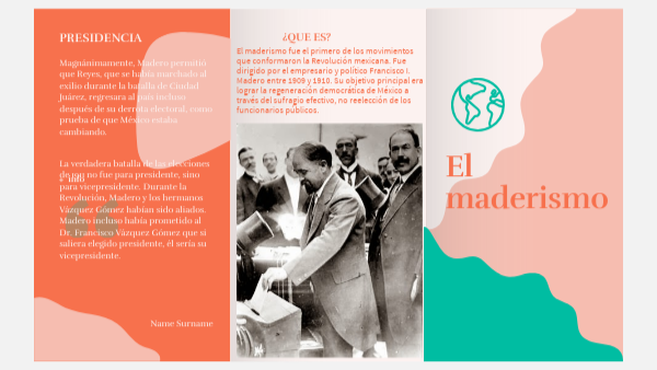 El maderismo fue el primero de los movimientos que conformaron la Revolución mexicana. Fue dirigido por el empresario y político Francisco I. Madero entre 1909 y 1910. Su objetivo principal era lograr la regeneración democrática de México a través del sufragio efectivo, no reelección de los funcionarios públicos.