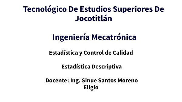 Estadística y Control de Calidad Estadística Descriptiva Docente: Ing. Sinue Santos Moreno Eligio
