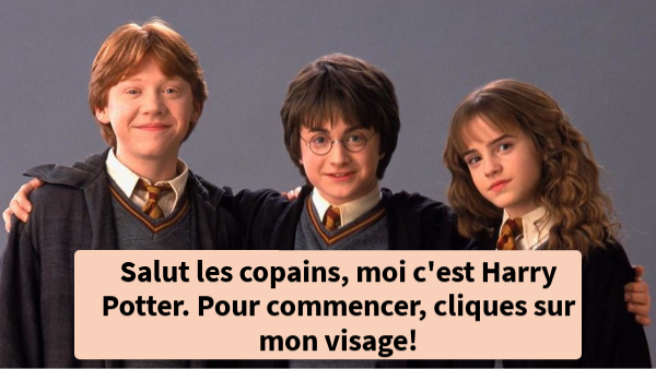 Salut les copains, moi c'est Harry Potter. Pour commencer, cliques sur mon visage!