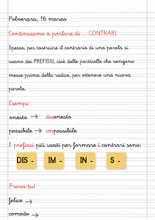 Spesso, per costruire il contrario di una parola si usano dei PREFISSI, cioè delle particelle che vengono messe prima della radice, per ottenere una nuova parola.