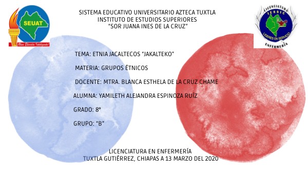 TEMA: ETNIA JACALTECOS “JAKALTEKO” MATERIA: GRUPOS ÉTNICOS DOCENTE: MTRA. BLANCA ESTHELA DE LA CRUZ CHAME ALUMNA: YAMILETH ALEJANDRA ESPINOZA RUÍZ GRADO: 8° GRUPO: “B”