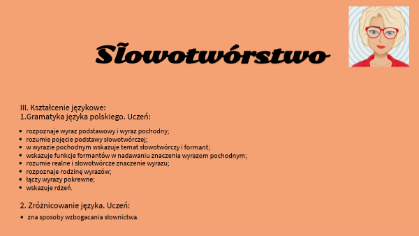 - rozumie realne i słowotwórcze znaczenie wyrazu;