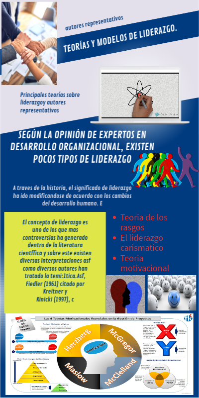 infografía descriptiva aspectos: Teorías y Modelos de Liderazgo.