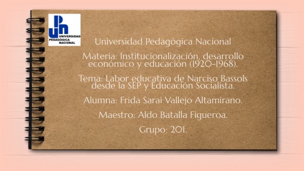 Universidad Pedagógica Nacional Materia: Institucionalización, desarrollo económico y educación (1920-1968). Tema: Labor educativa de Narciso Bassols desde la SEP y Educación Socialista. Alumna: Frida Sarai Vallejo Altamirano. Maestro: Aldo Batalla Figueroa. Grupo: 201.