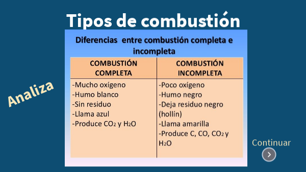 Con el mouse, selecciona cada uno de los tipos de combustión. Lee con atención la descripción y arrastra el texto al lugar que le corresponda.