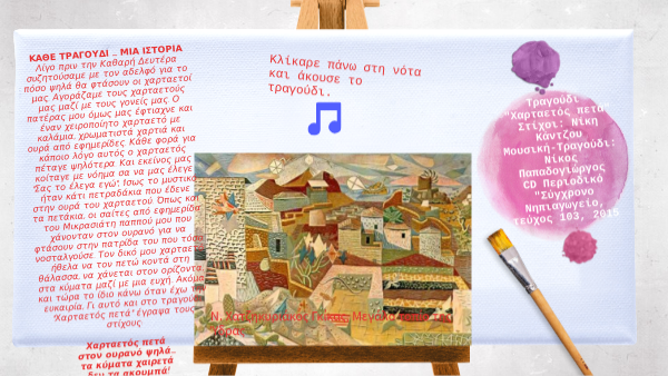 Τραγούδι "Χαρταετός πετά" Στίχοι: Νίκη Κάντζου Μουσική-Τραγούδι: Νίκος Παπαδογιώργος CD Περιοδικό "Σύγχρονο Νηπιαγωγείο, τεύχος 103, 2015