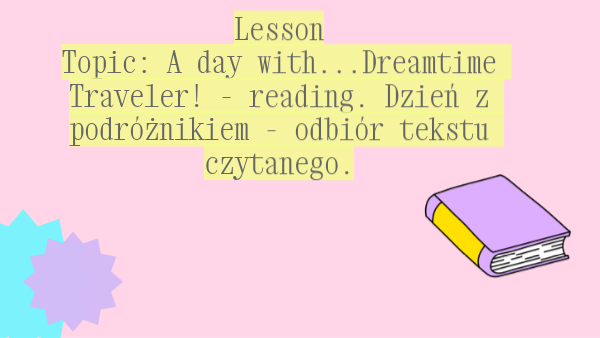 Lesson Topic: A day with...Dreamtime Traveler! - reading. Dzień z podróżnikiem - odbiór tekstu czytanego.
