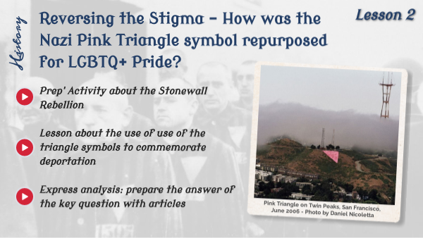 Prep' Activity about the Stonewall Rebellion Lesson about the use of use of the triangle symbols to commemorate deportation Express analysis: prepare the answer of the key question with articles
