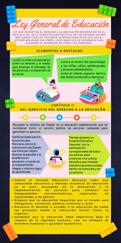 La LGE concibe a la educación como un derecho y el medio para alcanzar el bienestar de las personas y el desarrollo de la nación.