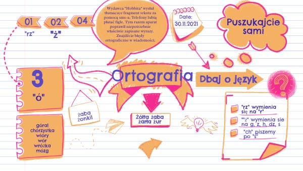 Wydawca "Hobbita" wysłał tłumaczce fragment tekstu za pomocą sms-a. Telefony lubią płatać figle. Tym razem aparat poprawił niepotrzebnie właściwie zapisane wyrazy. Znajdźcie błędy ortograficzne w wiadomości.