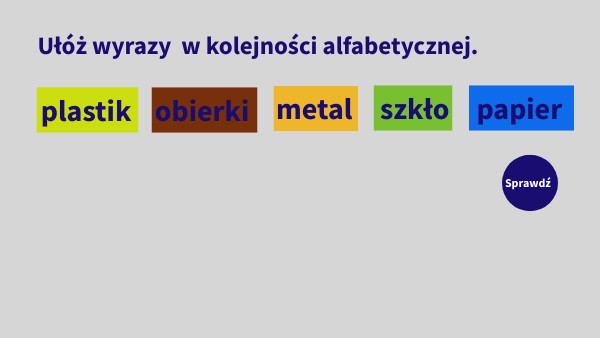 Ułóż wyrazy w kolejności alfabetycznej.