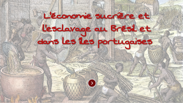 Quelques questions pour vous aider : 1) Comment s'organise l'économie sucrière au Brésil ? 2) Quelles sont conséquences de l’économie sucrière sur l’économie du Portugal ?3) Pourquoi fait-on appel à des esclaves d'Afrique pour produire le sucre ? 4) Comment s'organise la traite transatlantique ? (qui vend les esclaves, contre quoi sont-ils échangés, comment sont-ils transportés...)