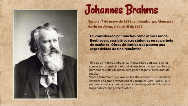Es considerado por muchos como el sucesor de Beethoven, escribió cuatro sinfonías en su periodo de madurez. Obras de música que poseen una expresividad de tipo romántico.