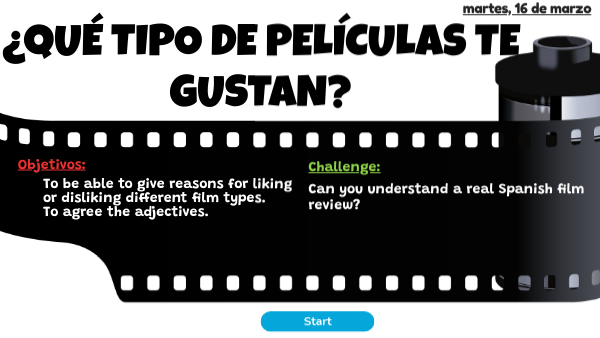 Using cognates to guess meaning To be able to give reasons for liking or disliking different film types. To agree the adjectives.
