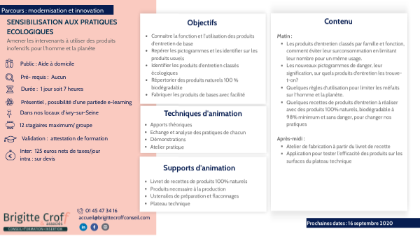- Personne en situation de handicap : nous contacter pour voir ensemble comme adapter la formation