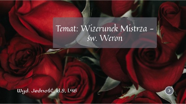 Jezus szedł na miejsce skazania, z trudem niosac krzyz. Był bardzo słaby i pokaleczony po biczowaniu. Nie skarzył sie i nie prosił o pomoc. Weronika dostrzegła jednak, ze potrzebuje ulgi w cierpieniu fizycznym i choc odrobiny współczucia. Podeszła do Jezusa i otarła Mu twarz, pokazujac, ze chce Mu pomóc.