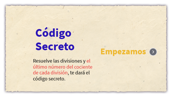 Resuelve las divisiones y el último número del cociente de cada división, te dará el código secreto.