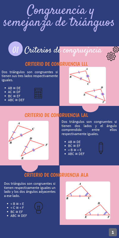 Dos triángulos son congruentes si tienen dos lados y el ángulo comprendido entre ellos respectivamente iguales.