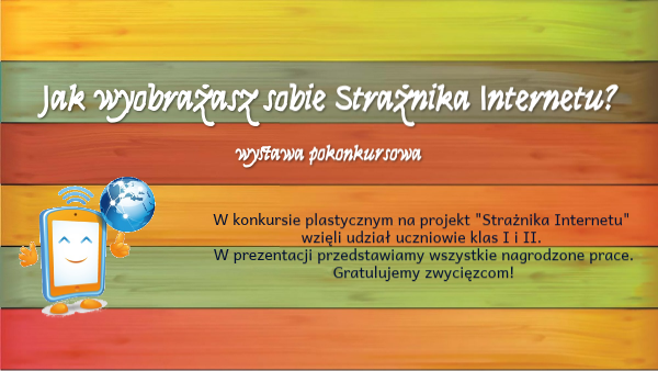 W konkursie plastycznym na projekt "Strażnika Internetu" wzięli udział uczniowie klas I i II. W prezentacji przedstawiamy wszystkie nagrodzone prace. Gratulujemy zwycięzcom!