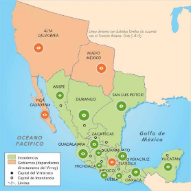Mapa Geopolítico de Nueva España entre los siglos XVII y XVIII