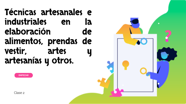 Técnicas artesanales e industriales en la elaboración de alimentos, prendas de vestir, artes y artesanías y otros.