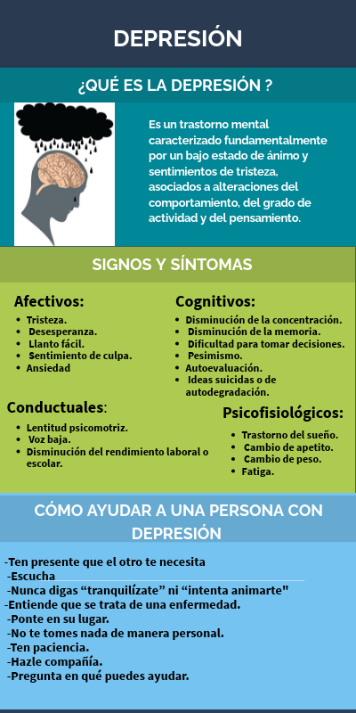Es un trastorno mental caracterizado fundamentalmente por un bajo estado de ánimo y sentimientos de tristeza, asociados a alteraciones del comportamiento, del grado de actividad y del pensamiento.