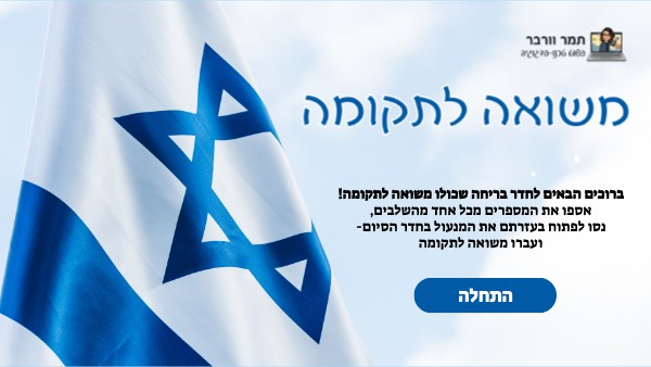 !ברוכים הבאים לחדר בריחה שכולו משואה לתקומה ,אספו את המספרים מכל אחד מהשלבים -נסו לפתוח בעזרתם את המנעול בחדר הסיום ועברו משואה לתקומה
