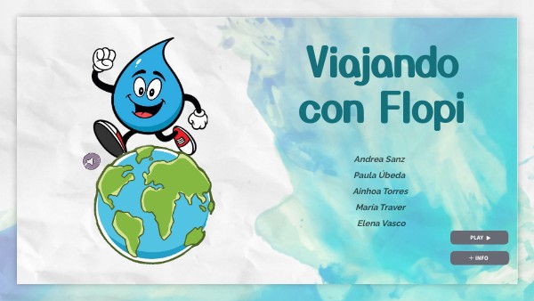 Bienvenidos y bienvenidas a todos y todas los/las docentes de Educación Infantil El siguiente Genially contiene una secuencia didáctica protagonizada por la temática del agua y dirigida a los tres niveles del segundo ciclo de Educación Infantil. Como podréis observar desde la primera diapositiva, todas las actividades estarán acompañadas por la mascota Flopi, que se encargará de guiar a vuestros/as alumnos/as en el viaje. En la primera hoja encontraréis un índice en el que aparecerán las nueve actividades propuestas, y cuando presionéis sobre los títulos os llevarán a las diapositivas correspondientes. Una vez que hayáis dado este primer paso, os ubicaréis dentro de una actividad específica en la que aparecerán estos tres símbolos, indicando el grado de dificultad (aldea gaseosa = nivel más bajo // aldea líquida = nivel intermedio // aldea sólida = nivel más alto)