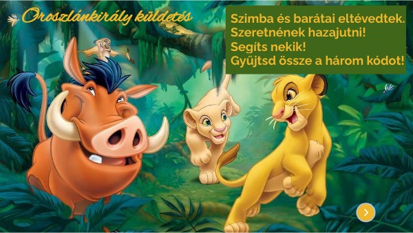 Szimba és barátai eltévedtek. Szeretnének hazajutni! Segíts nekik! Gyűjtsd össze a három kódot!