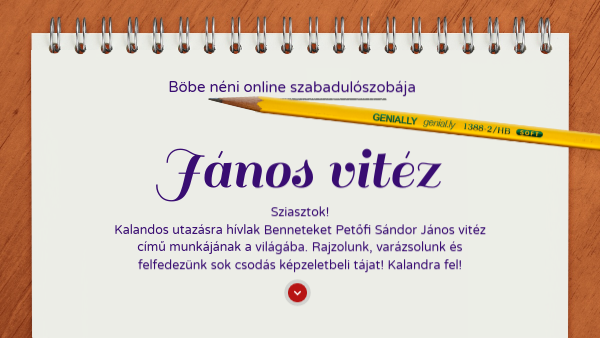 Sziasztok!Kalandos utazásra hívlak Benneteket Petőfi Sándor János vitéz című művének a világába. Rajzolunk, varázsolunk és felfedezünk sok csodás képzeletbeli és régi tájat. Kalandra fel! Kattints a nyílra!